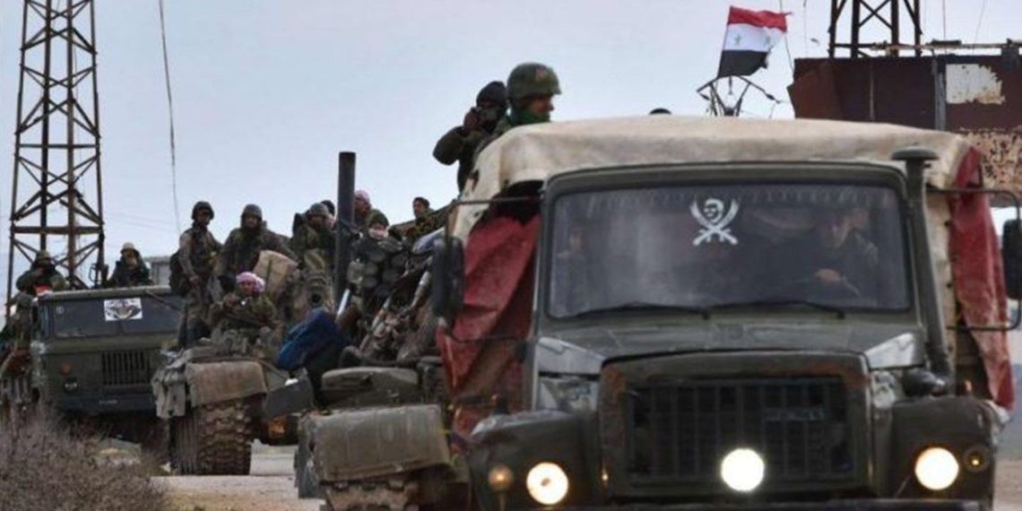 وقال مراسلنا إن قوات النظام استقدمت تعزيزات عسكرية تضمنت عربة BMB، ومدفع مضاد للطيران عيار 57، وما يقارب 10 سيارات تقل عناصر.