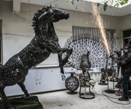 استطاع الفنان التركي “مروان ألتن أورك”، من صناعة العديد من المجسمات، باستخدام عشرات الآلاف من قطع الخردة.