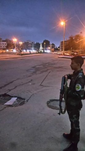 وتناقل الناشطون صوراً على مواقع التواصل الاجتماعي، تظهر انتشار عشرات العناصر التابعين لفرع الأمن السياسي ومجندين يتبعون لحزب البعث بالقرب من التمثال الذي أعاد النظام نصبه، إضافة لنشر دوريات متجولة بسيارات دفع رباعي مزودة برشاشات متوسطة تجوب أحياء المنطقة.