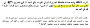 وكانت الناطقة باسم حملة عاصفة الجزيرة، “ليلوا العبد الله” قد أكدت في تصريح لروسيا اليوم، أن الضربات الإيرانية جاءت لمنع هروب فلول “داعش” من المناطق المحاصرة من قبل قوات “قسد” شرقي الفرات.