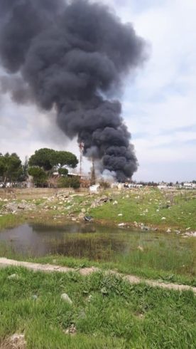 لحظة احتراق مخيم للاجئين السوريين في تنعايل اللبنانية – الدفاع المدني اللبناني