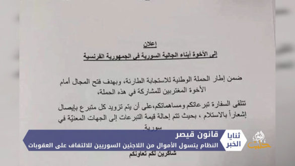 النظام يتسول الأموال من اللاجئين السوريين للالتفاف على قانون قيصر