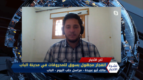 مداخلة مالك أبو عبيدة – انفجار مجهول بسوق للمحروقات في مدينة الباب بريف حلب