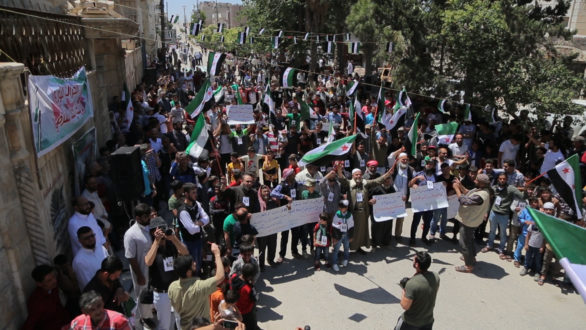 مظاهرة في مدينة إدلب تطالب بإسقاط النظام وتأمين عودة المهجرين إلى مدنهم