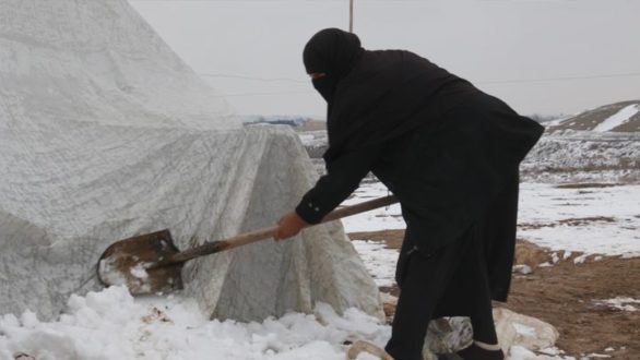 العاصفة الثلجية.. معاناة جديدة تضاف لمشاكل النازحين في تل أبيض شمال الرقة