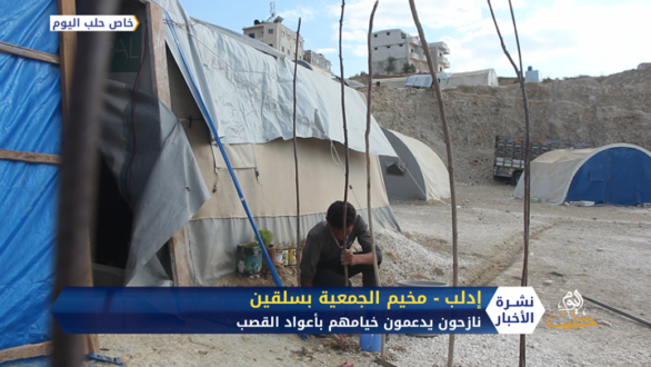 تدعيم الخيام بالقصب.. حلول جديدة يبتكرها النازحون للوقاية من عوامل الطقس
